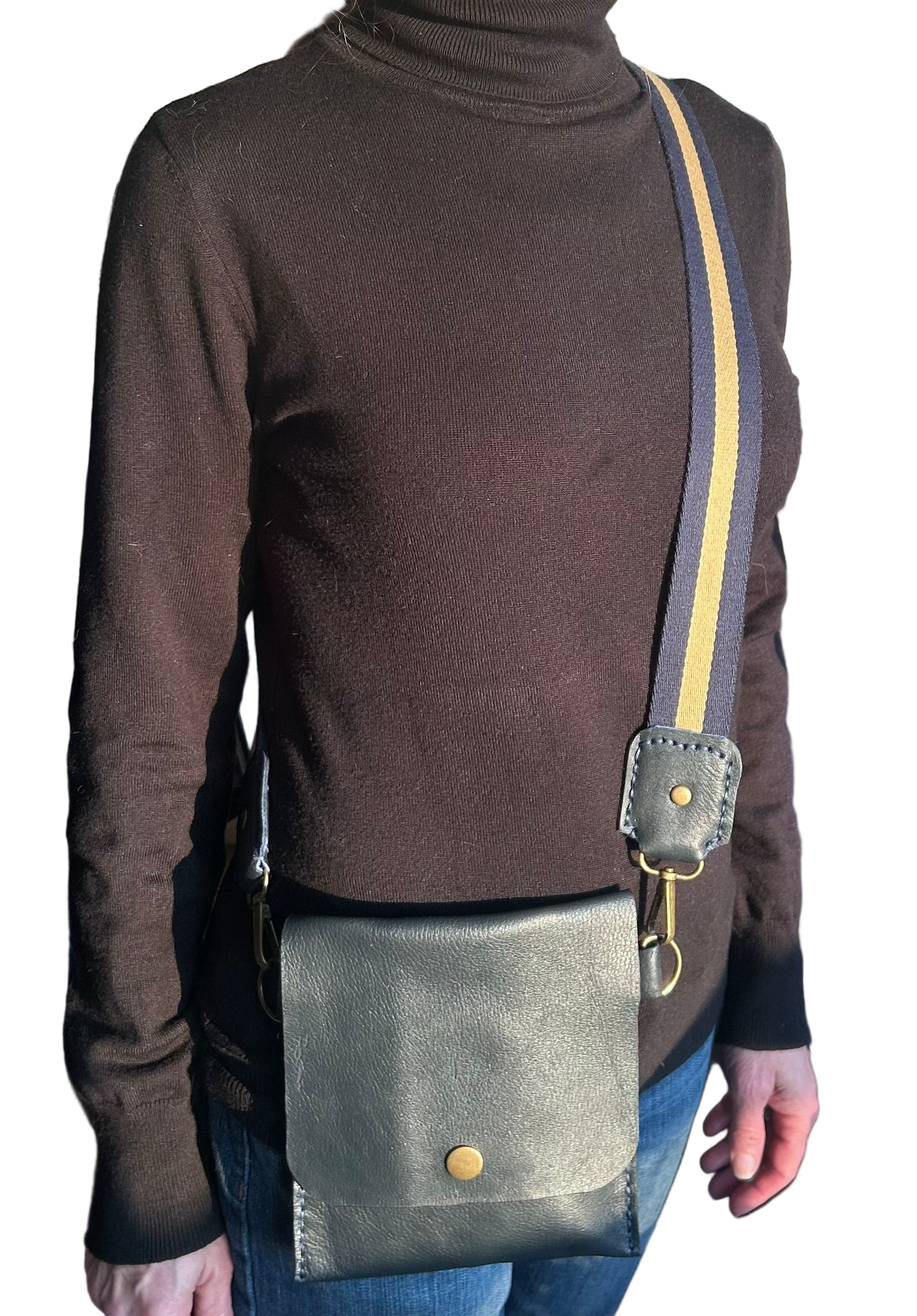 Designed to keep essentials close and your hands, free. An adjustable strap offers a customized carry, while a metal snap closure keeps your phone, wallet, keys, etc. secure. Gender neutral.